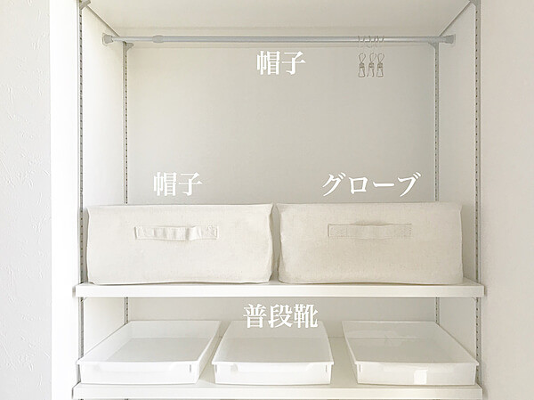 ニット帽や形のしっかりとしたものは無印良品のソフトボックスにいれています。