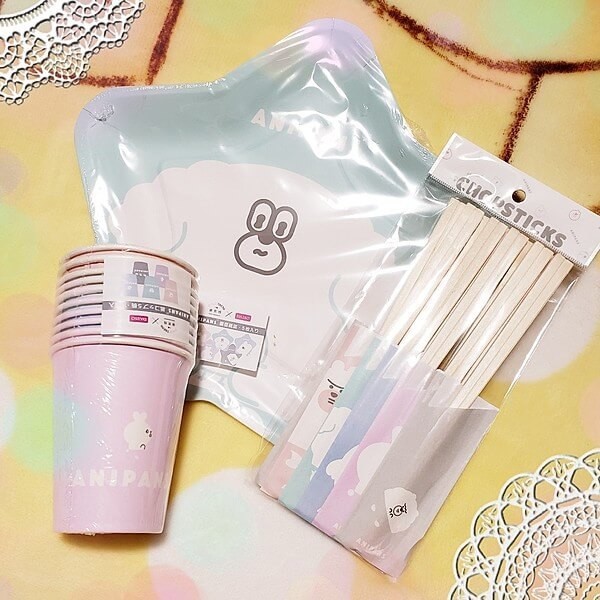 こちらはアニパンズの「紙皿」「割箸」「紙コップ」です。使うのがもったいなくなってしまうような商品ですね。それぞれ5匹のキャラが描かれているデザインがセットになっています。パーティーにはもちろん、ちょっとしたお祝いに食卓に並べてもとてもかわいいですよね。