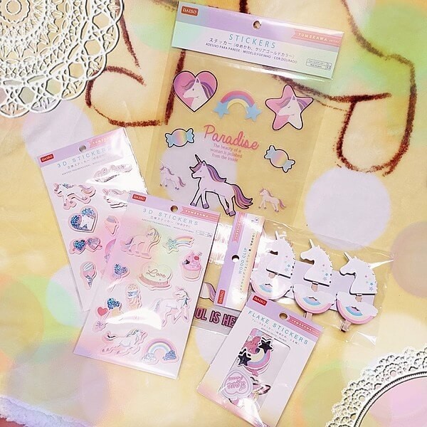 最後にゆめかわグッズで飾ったカードや写真にユニコーンや虹のウッドクリップを飾ればかわいさ100点満点ですね!