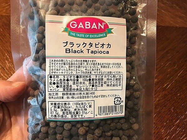 成城石井で発見したギャバンの「ブラックタピオカ」は、その名の通り黒い色の乾燥タピオカです。