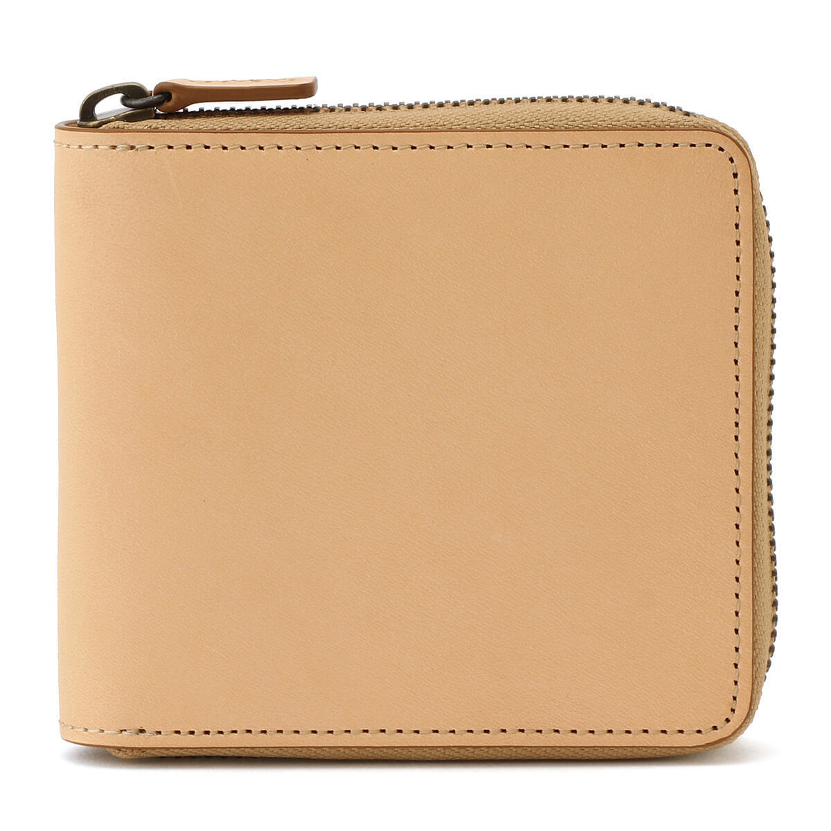 イタリア産ヌメ革ラウンドファスナー二つ折り財布