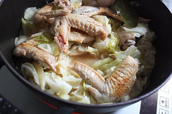 しかも、手をかけずにほっとくだけでお肉も野菜もたっぷり食べられる「鶏手羽先とキャベツの白ワイン煮」はいかがですか?