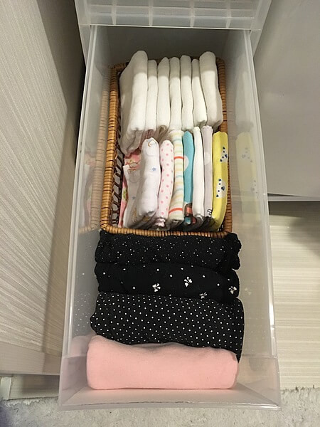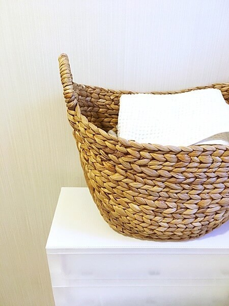 洗濯した物をたたむ手間もはぶけるので、当日に使うものはかごに入れています。