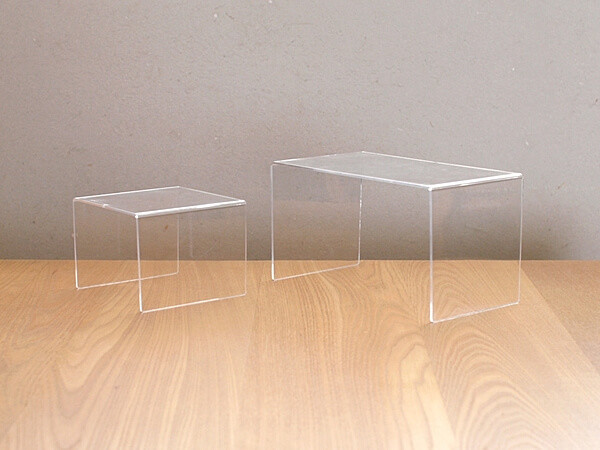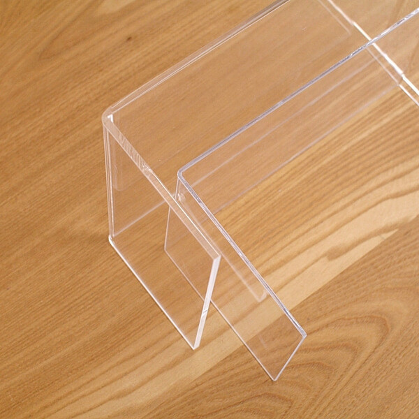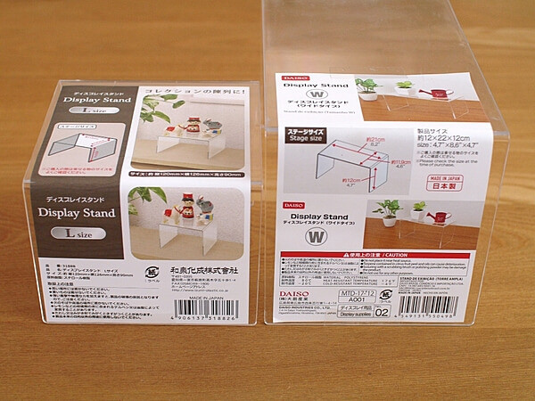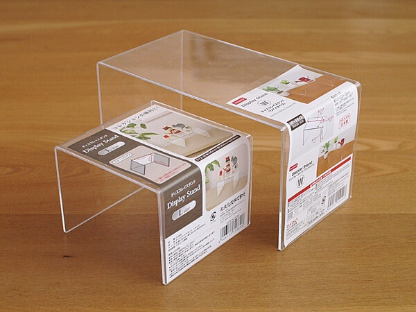 和泉化成の「ディスプレイスタンド」と無印良品の「アクリル仕切棚」。 こちらの大きな違いは、厚みです。