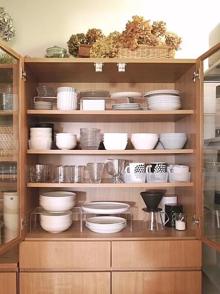 無印のアクリル仕切棚といえばお皿収納の便利グッズとしてもかなり優秀で、ウチでも食器棚の中で計5個も活躍してくれています。