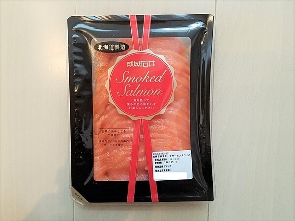 時々違うスーパーでもスモークサーモンを買うことがありますが、後ろが透けてみえるくらい薄かったり、細切れな端っこが入っていたり、とガッカリするようなことも度々ありますが、この成城石井のスモークサーモンは、期待を裏切りません。安心して買えます。