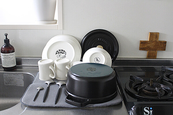 洗い物をした後すぐに食器を拭けば、シンク周りをいつでも綺麗に保てるのもマットの魅力です。