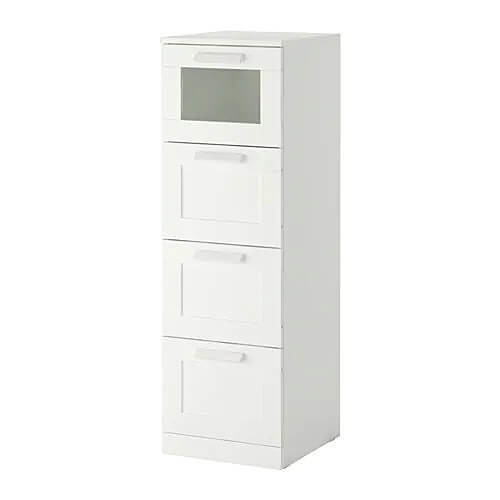IKEAの4段チェスト、ブリムネスは、自分で組み立てる必要がありますが、分類しながらたくさんのキッチン用品を収納できます。