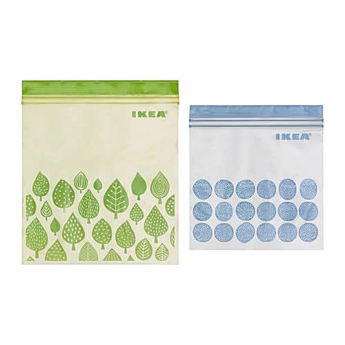 IKEAのプラスチック袋は、サイズや色も豊富に揃っているので、アイテムごとに分類して収納するのに便利です。冷凍庫でも使用できるので、冷凍保存にも役立ちます。