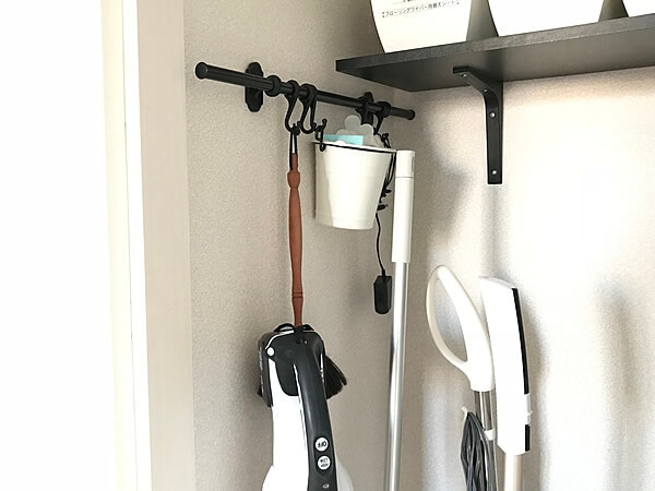 ホコリ取りなど、小まめに使いたい掃除道具は、つるして収納できるよう工夫してみることをおすすめします!