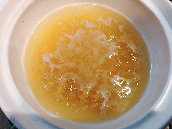 ② 茹でていくと水分が写真のようにだんだん少なくなってきます。