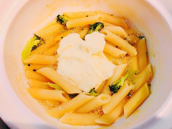 ③ チーズとブロッコリーを入れて混ぜたら完成です。