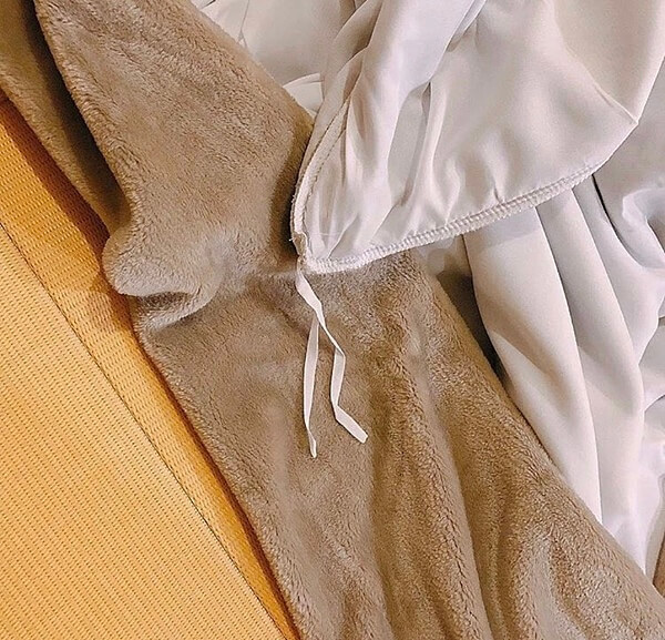 カバー中の四隅に紐が付いているので、こたつ布団が中でズレる心配もありません♪