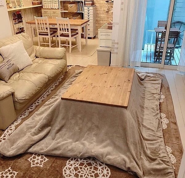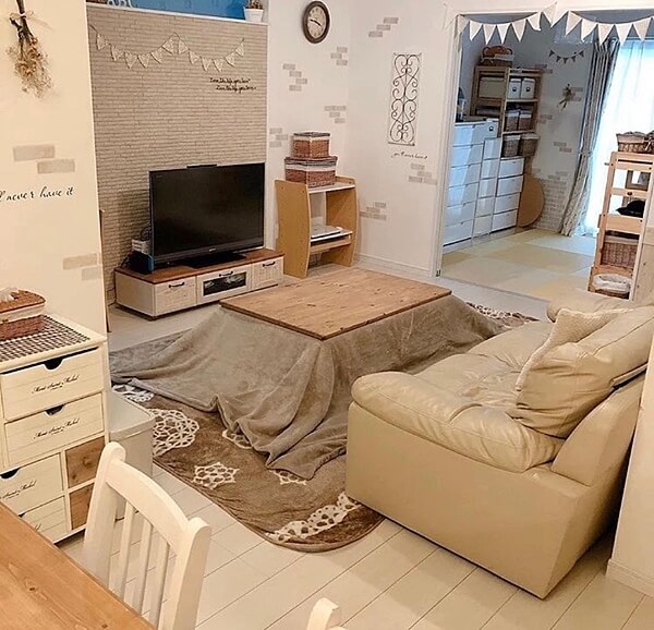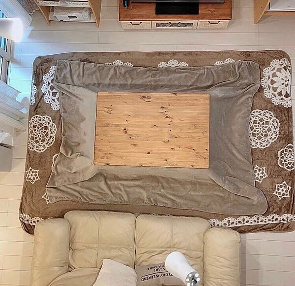 柄があまり好みでないこたつ布団も、カバーに入れてしまえば気になりません。