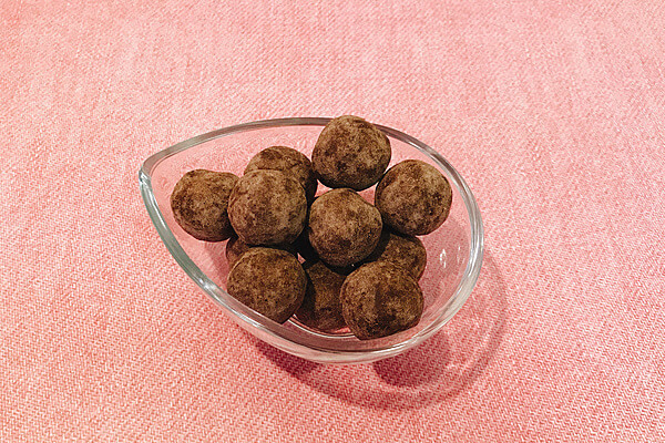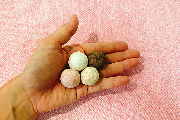 「ショコラ」はいちごよりも香りが強く、袋を開けるとココアパウダーの香りが分かります。見た目はトリュフっぽいですが、重さはだいぶ違います。ブールドネージュは軽いんです。