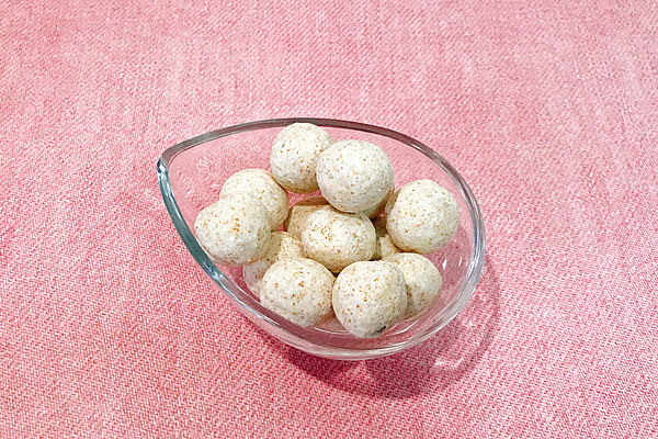 大きさは白玉と同じくらいのまさに一口サイズ。つまんでぽいぽいと口に運んでしまいます。止まらない……!