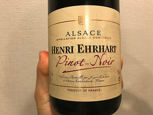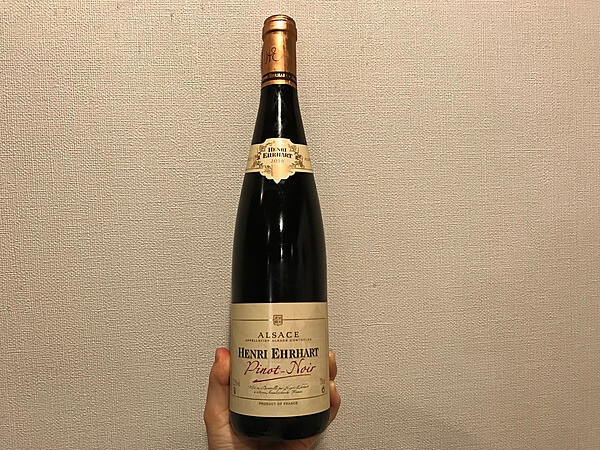 フランスでは地域ごとに特色のあるワイン作りを行っていますが、アルザス地方もその一つ。ドイツとの国境に面したこの地域のワインは、ドイツ文化の影響も色濃く、その一例がこちらのピノ・ノワールのボトルの形。ドイツワインによく使われるフルート型(細長いなで肩のボトル)ですね。