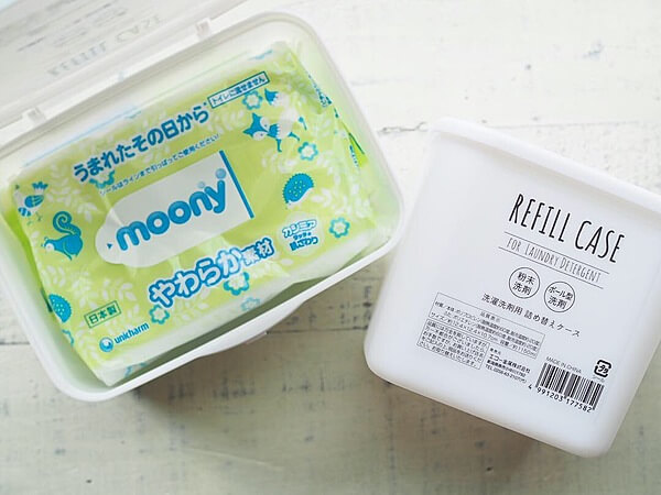 こちらはシンプルな無地のホワイトで、掃除用シートや洗濯用洗剤などを収納することができます。