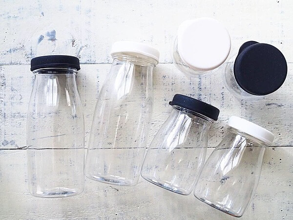 牛乳瓶のような形が可愛く、中身も見えやすいクリアボトルなので中に何が入っているかも一目瞭然。