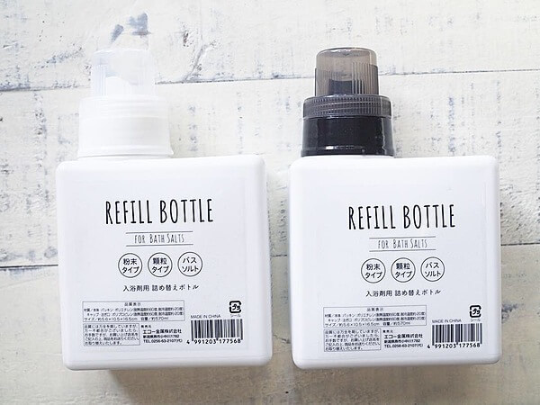 また同じくフレッツには、液体洗剤やバスソルトなどをおしゃれに詰め替えできる「リフィルボトル」もあります。