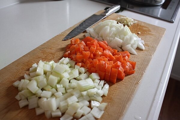 他の野菜は大豆と同じくらいの大きさに切っておきます。