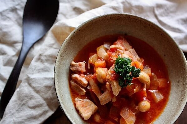 手間をかけずに時間に任せた、野菜の水分だけで完成する濃厚なポークビーンズです。