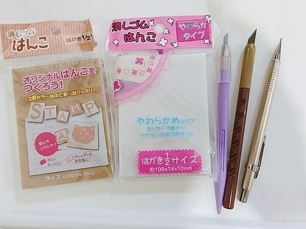 今回は100均の「消しゴムはんこ作成グッズ」を使って、その作り方を紹介してきたいと思います。