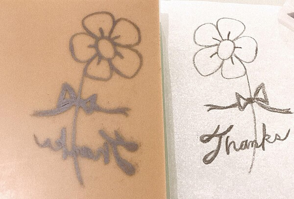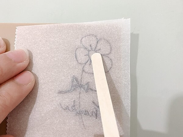 下絵を写したトレーシングペーパーを、鉛筆で書いた面を消しゴム側に向けて、そっとおいていきます。