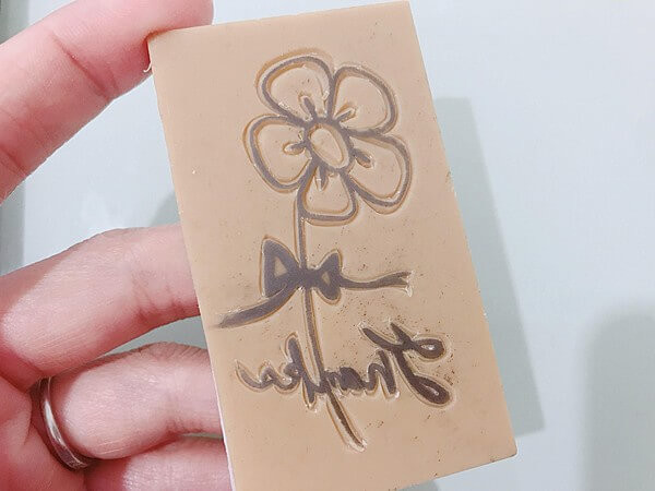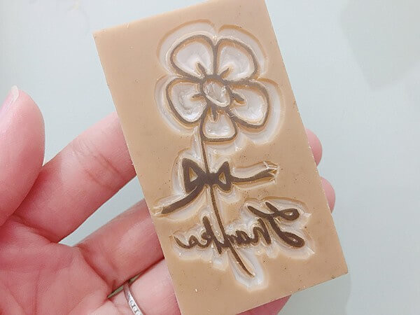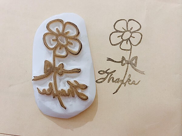 ここで疑問が……と思った方、きっと文字を彫ろうとしているのではないでしょうか。でも大丈夫。文字は消しゴムには反転して転写することになりますが、スタンプを押す時は反転しませんので何も考えずに下絵を書いてくださいね。