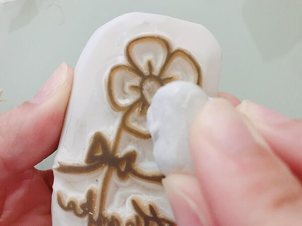 こするのは爪でも問題ありませんし、粘土ベラのようなものでもやりやすいかと思います。