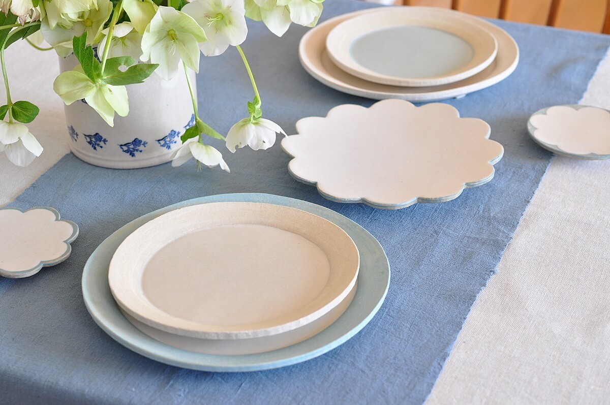 こういったシンプルなお皿なら、表情のあるお皿と一緒にテーブルコーディネートしやすいですよ。