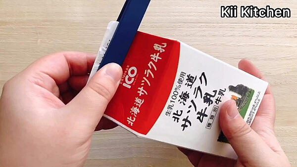 牛乳パックの口を閉じてしっかりと持ち、50回ほど振り混ぜてください。
