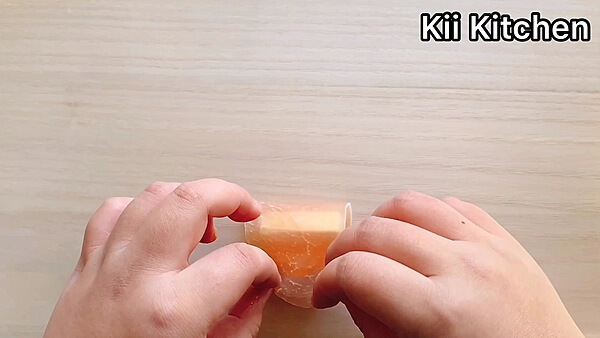 3. 生ハムで柿とクリームチーズを包む。