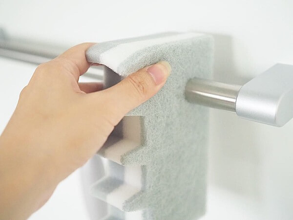 引っ掛けられるバススポンジは、スポンジに穴が開いているので、タオルバーなどにそのまま引っ掛けて”つるす収納”ができます。