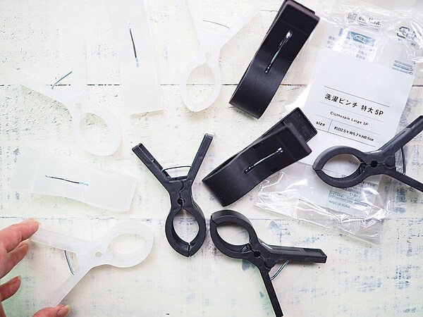 ブルーや黄緑などの洗濯バサミは生活感が出てしまいがちなアイテムですが、シンプルな黒と白はとてもスタイリッシュ♪
