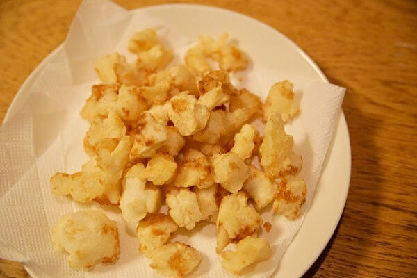 乾燥させたお餅を、油で揚げて塩を振ったら完成です。
