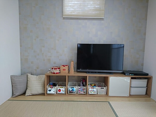 まだ子どもが小さいので、現在はテレビボード兼おもちゃ収納になっています。