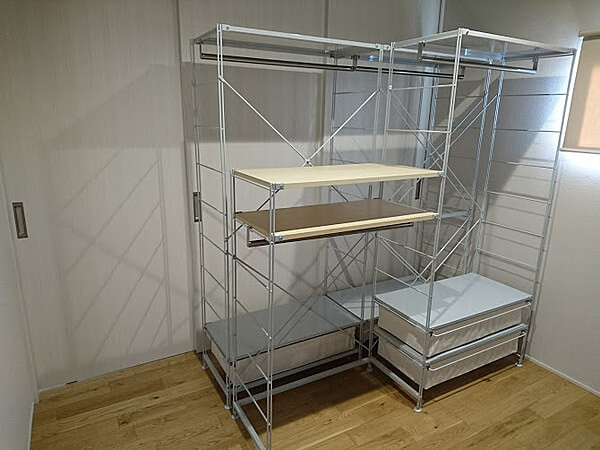 そして、洋服の収納に使ったのが「スチールユニットシェルフ」です。