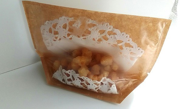キャラメルソースが冷えて固まったらキャラメルおかきの完成です。