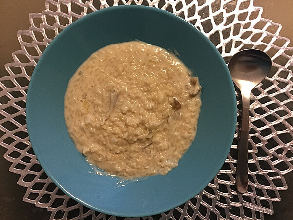 パッケージ裏には450mlの水を鍋に沸騰させ、リゾットの材料を入れて15分ほど煮込んで出来上がりと書かれています。作り方は4種類とも同じです。リゾットは18cmの鍋を使って作りました。