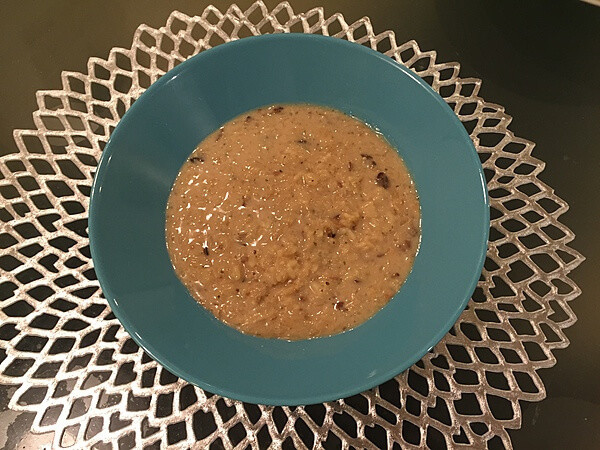 ときどきかき混ぜながら待つこと15分。まだ水っぽかったので、さらに煮込むこと3分。完成までの所要時間は18分でした。お米はやや硬めに仕上がります。