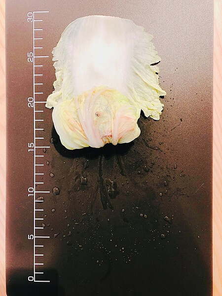 ① 白菜は茹でるかレンジで加熱しておきます。