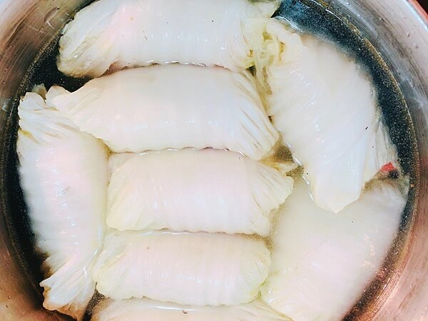 ※きっちり詰めてお鍋にいれた方が崩れにくいです。心配な方は白菜の巻き終わりを爪楊枝などでとめておきましょう。