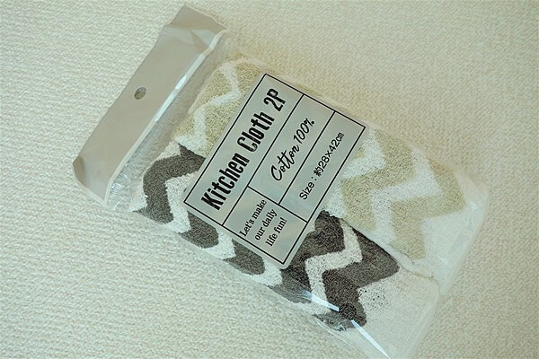 おすすめのシェブロン柄アイテムその2は、綿100%で吸水性に優れたキッチンクロスです。 サイズは28×42㎝で広げてみると縦長のかたちをしています。