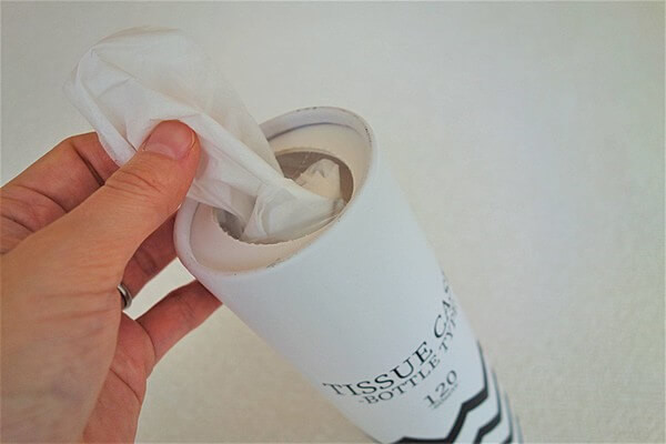 ボトル型なので場所を問わず省スペースで使えるところがポイントです。使い終わったら、底蓋を外して市販のティッシュを詰め替えることもできます。