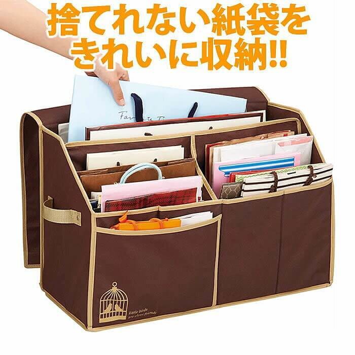5つのポケットに紙袋を分類して収納できる専用ストッカーです。カバーがついていてホコリや日焼け防止にも◎。