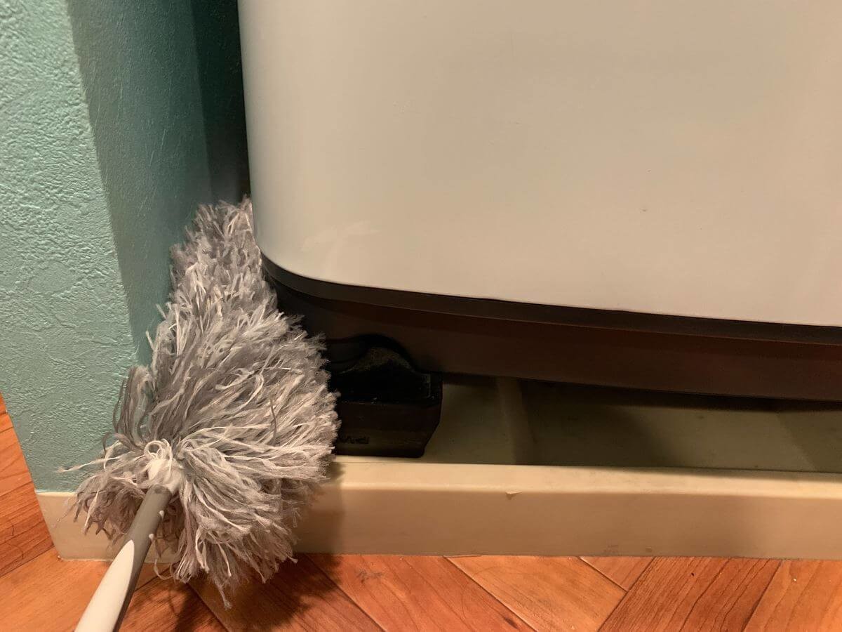 髪の毛やホコリなどが入り込み、カビも発生しやすいパン。この部分は、掃除機で吸い取る方法で掃除をし、届かない場所や、より細かいゴミを除去したい場合にはハンディモップを使います。