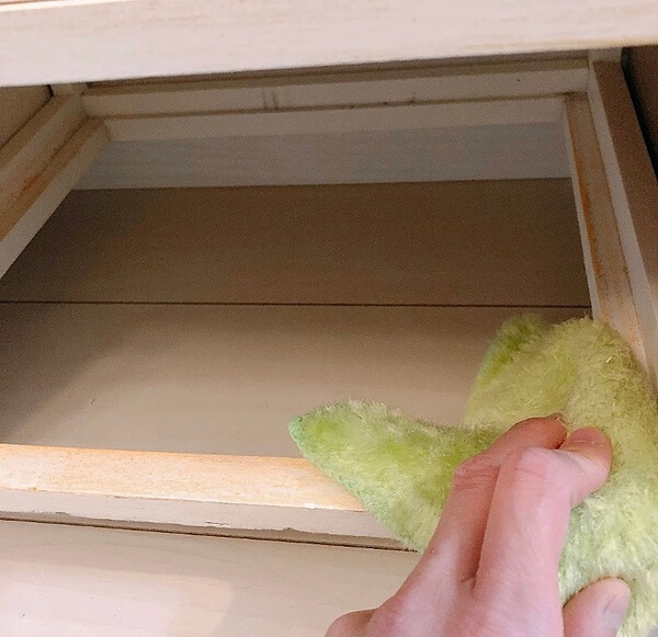 引き出しの裏側のふちも拭きます。