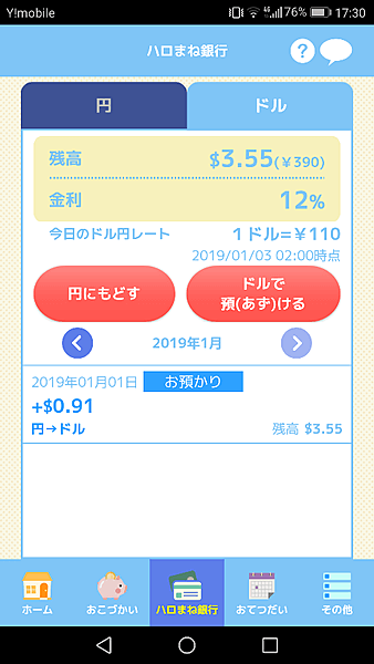 娘には、外国では日本のお金(=円)が外国で使えるわけではないと話をしていました。また、こういった旅行のために、ハロまねの外貨預金にも少しずつ貯めていました。