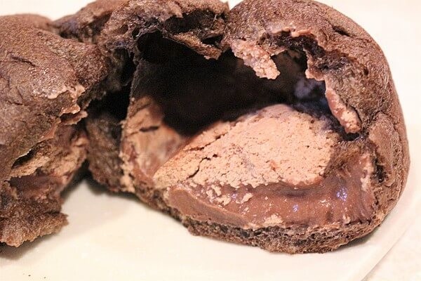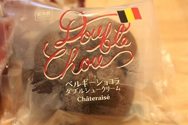 チョコ味のついた香ばしいシュー皮に、ミルクチョコ生クリームとスイートチョコカスタード生クリームがたっぷり。